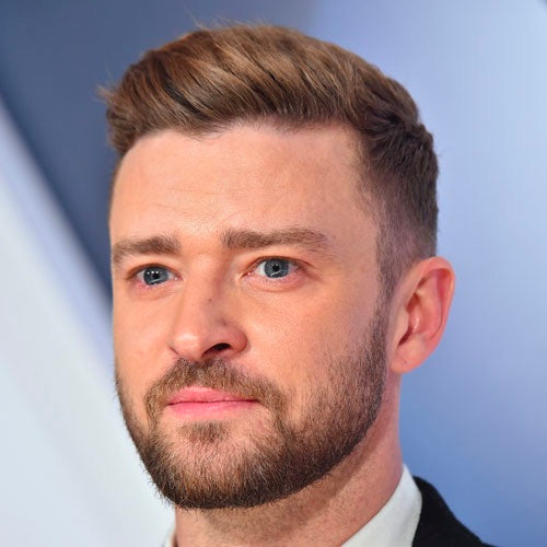 Another famous singer, Justin Timberlake, has a scruffier look but a fade nonetheless, which opens up towards his chin.