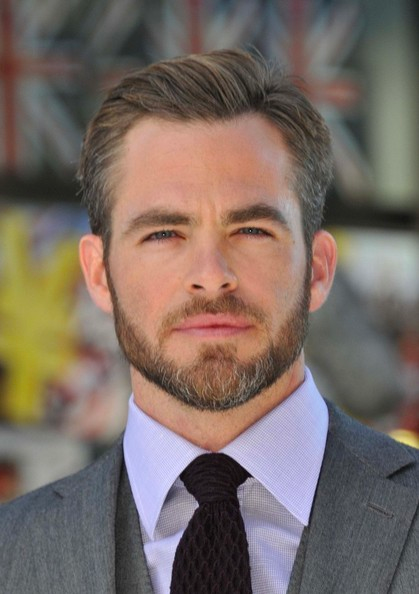 Chris Pine looks sophisticated with his preppy beard and light gray hairs.