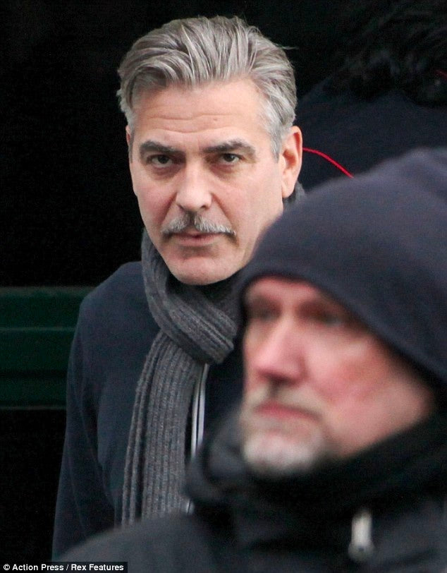 George Clooney is shown here with a sharp-looking pyramidal mustache.