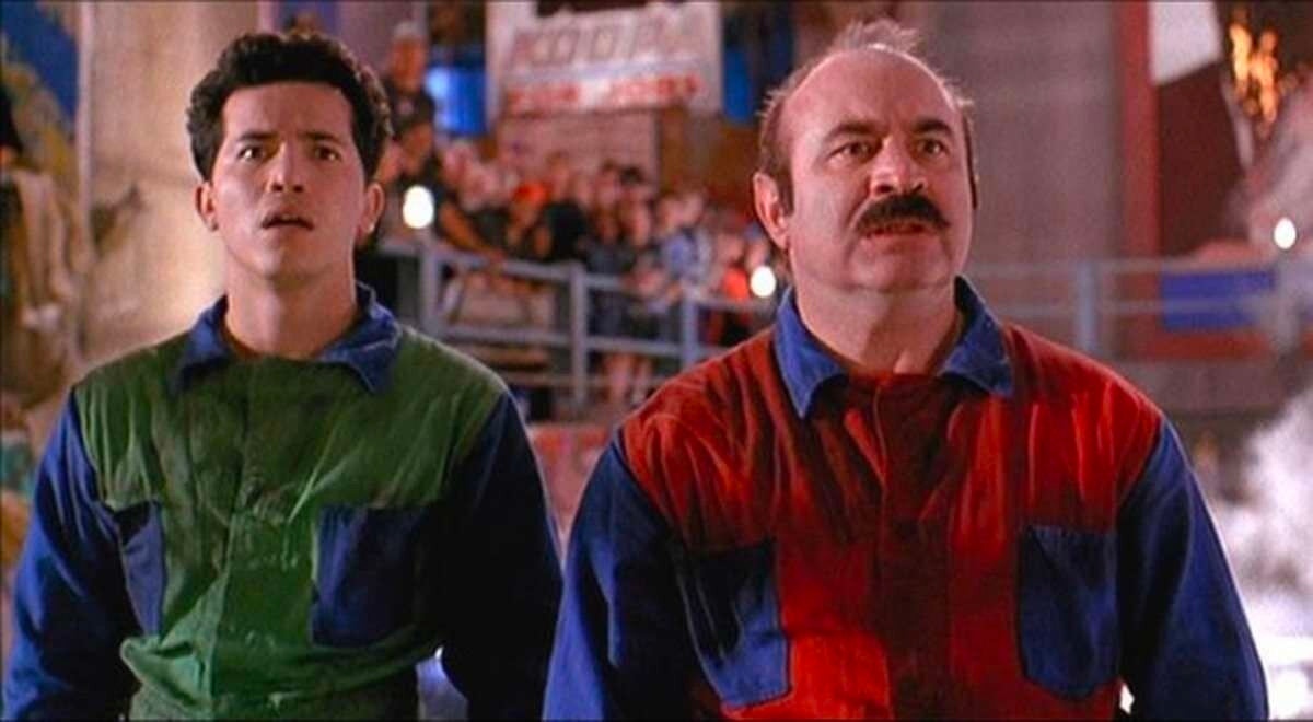 The plumber’s mustache comes from the loveable character Mario from Super Mario Bros., played by Bob Hoskins here.
