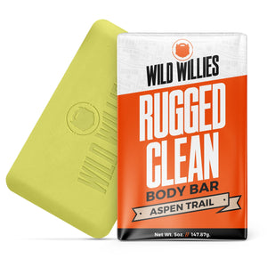 Get Ruggedly Clean with the Wild Willies Rugged Clean Body Bar. The best way to get clean after a hard day's work. Wash away sweat and dirt, not the man.